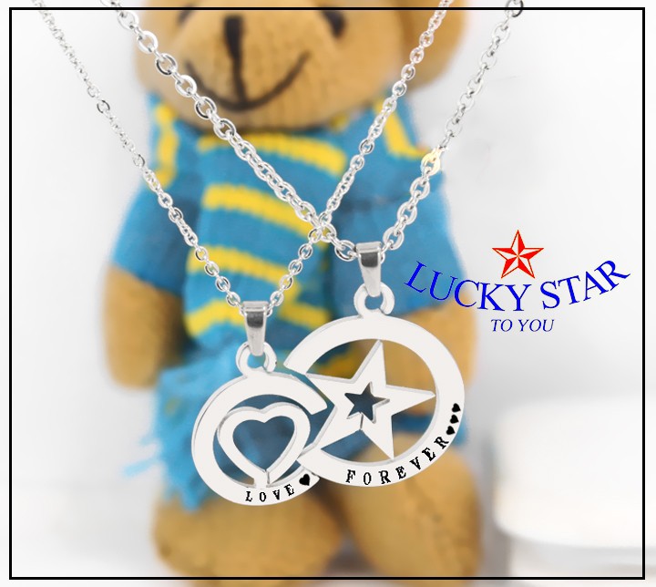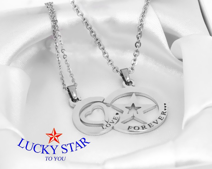 - Dòng chữ “Forever Love” được khắc trên cả hai mặt Dây chuyền cặp đôi ngôi sao trái tim có thể hiểu như lời đồng hẹn ước của cả hai về một tình yêu bền lâu, vĩnh cửu không tách rời.