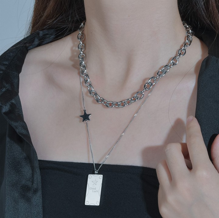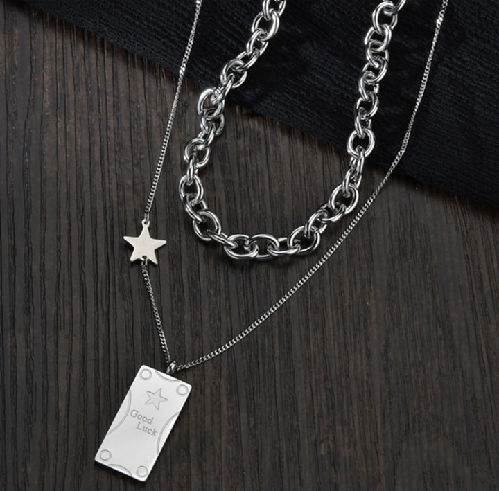 DÂY CHUYỀN GOOD LUCK ĐÍNH NGÔI SAO HAI TẦNG PHONG CÁCH