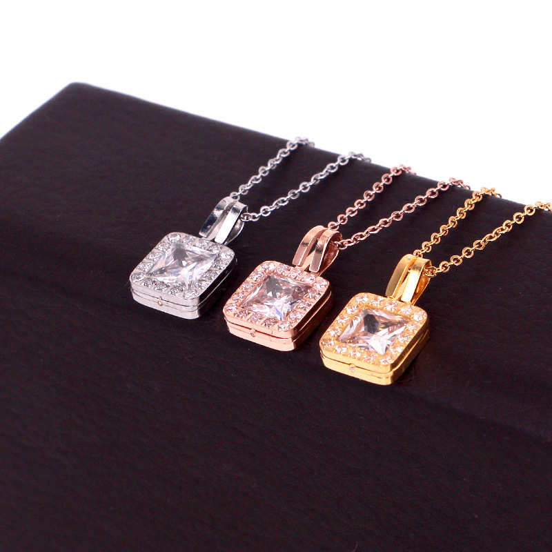 - Hiểu rõ tâm lý người dùng vốn ưa chuộng những mẫu trang sức có giá vừa phải và thiết kế thời trang, dễ thay đổi, trang sức titan là một sự lựa chọn tuyệt vời. Được gia công từ 100% chất liệu titan cao cấp, dây chuyền mặt vuông đính đá có độ bền cao, khối lượng nhẹ không gây vướng víu và đặc biệt không bị oxi hóa hay gỉ sét.