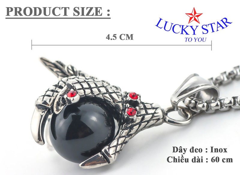 - Điểm nhấn của dây chuyền nam chính là bộ móng vuốt rồng thần giữ lấy viên ngọc đen huyền nổi bật khí chất mạnh mẽ và phong độ của đấng nam nhi.