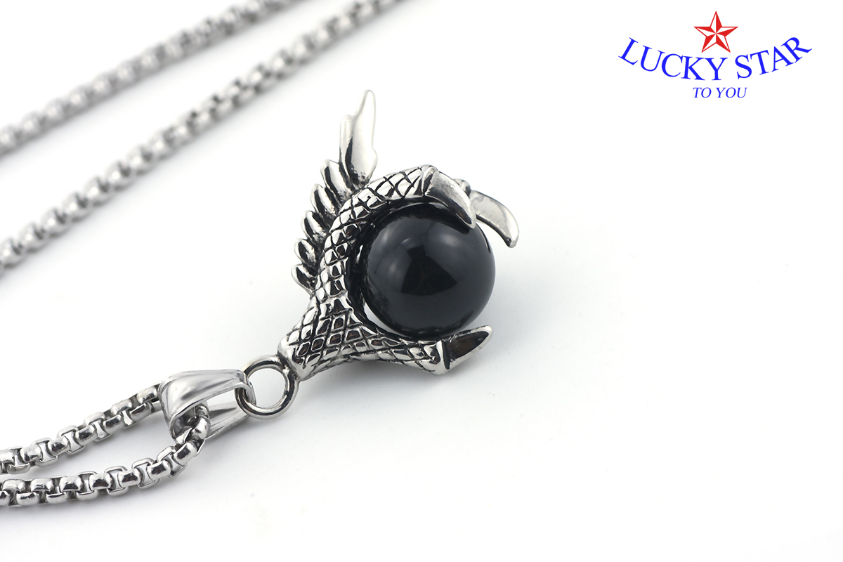 Dây chuyền nam vuốt rồng thần đá đen mạnh mẽ – độc đáo – nam tính