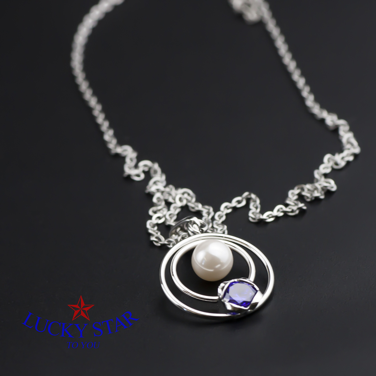 - Bao gồm sợi dây inox cao cấp,viên đá xanh dương và ngọc trai