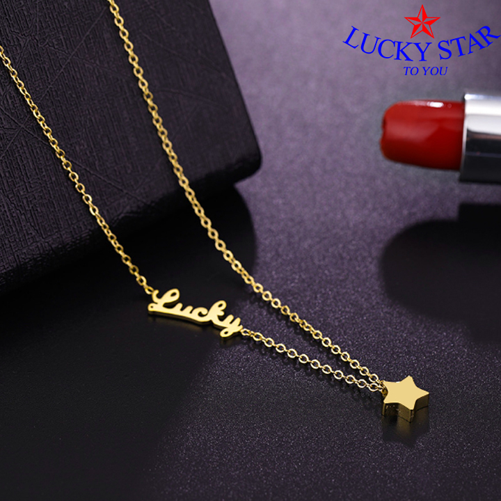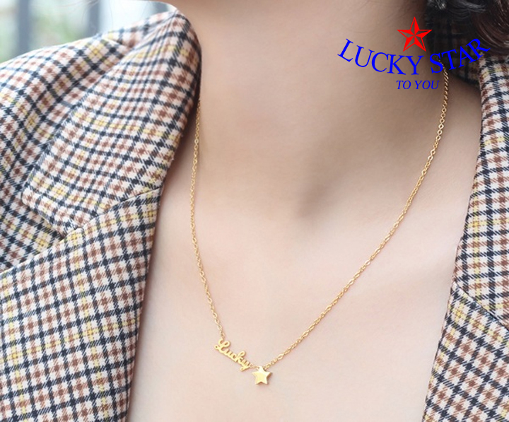 - Với phong cách thiết kế độc đáo – chữ Lucky mang ý nghĩa đặc trưng là may mắn và hình ảnh ngôi sao nhỏ đáng yêu kèm theo sự tinh xảo của sợi dây chuyền được mạ lớp vàng 24k này là một điểm nhấn đầy cuốn hút mang đến cho bạn món phụ kiện trang sức vô cùng thời trang và cá tính.