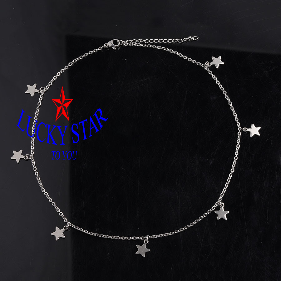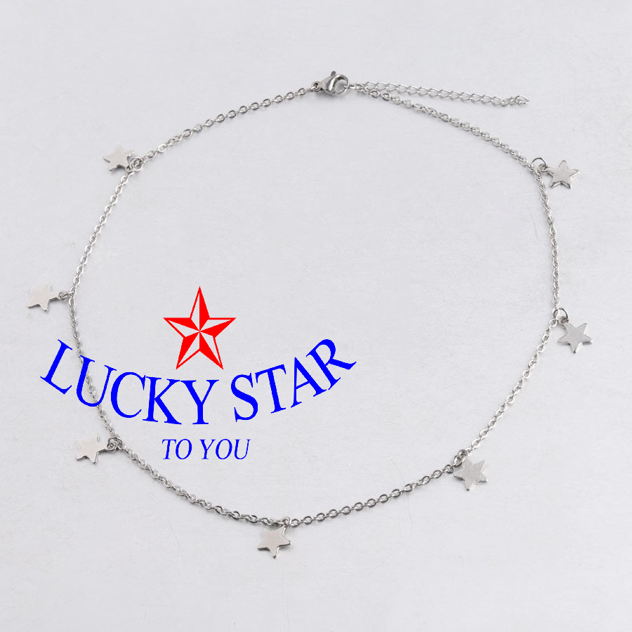 - Dây chuyền ngôi sao titan với thiết sợi mảnh tinh tế cùng với 7 ngôi sao 5 cánh màng vẻ đẹp hoàn hảo được gắn cố định. Như một dải sao lấp lánh trên bầu trời, 7 ngôi sao là dâu hiệu của sự may mắn, luôn tỏa sáng dù ở bất kì đâu. Hình ảnh ngôi sao là cảm hứng để chế tác nên món trang sức cũng như ẩn dụ với mỗi cô gái rằng “hãy luôn tự tin với vẻ đẹp vốn có của mình và cô gái đẹp nhất chính là cô gái biết tự tin tỏa sáng bằng chính nét đẹp ẩn sâu trong tâm hồn mình. Đừng ngần ngại thể hiện cá tính bản thân, bạn nhé!”