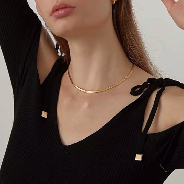 - Dây chuyền sợi mềm được chế tác 100% bằng titan không đen, không gây dị ứng hay gỉ sét nên bạn nữ hoàn toàn có thể yên tâm rằng món trang sức cho dù ôm trọn vùng cổ nhưng vẫn không gây bất kỳ tổn thương nào.