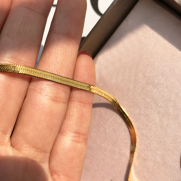 - Dây chuyền sợi mềm được với thiết kế đơn giản, chỉ là những móc nối khít nhau, độc đáo một cách tỉ mỉ tạo thành như một sợi dây liền hết sức sang trọng và tinh tế.