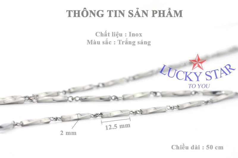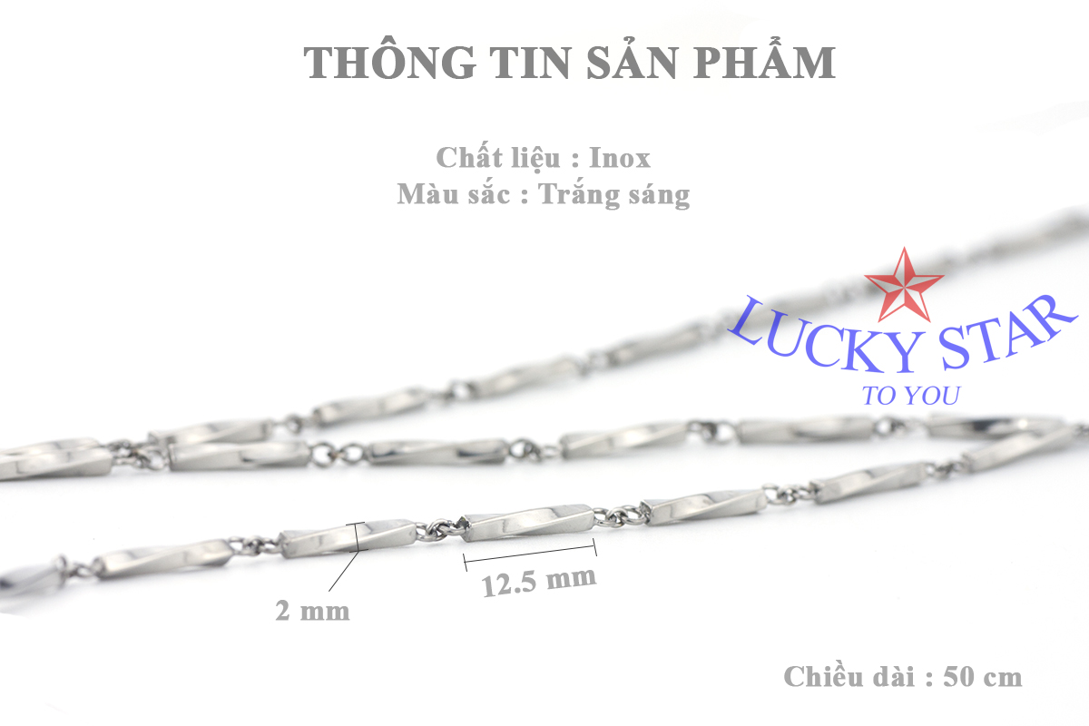 - Dây chuyền trụ xoắn nam tính độc đáo 2mm x 50 cm được thiết kế thời trang, tinh xảo. Những sợi inox thiết kế xoắn đẹp độc lạ dành cho nam mạnh mẽ, nam tính. Sự quyền lực, mạnh mẽ toát ra từ bạn khi đeo sợi dây chuyền vô cùng độc đáo này.