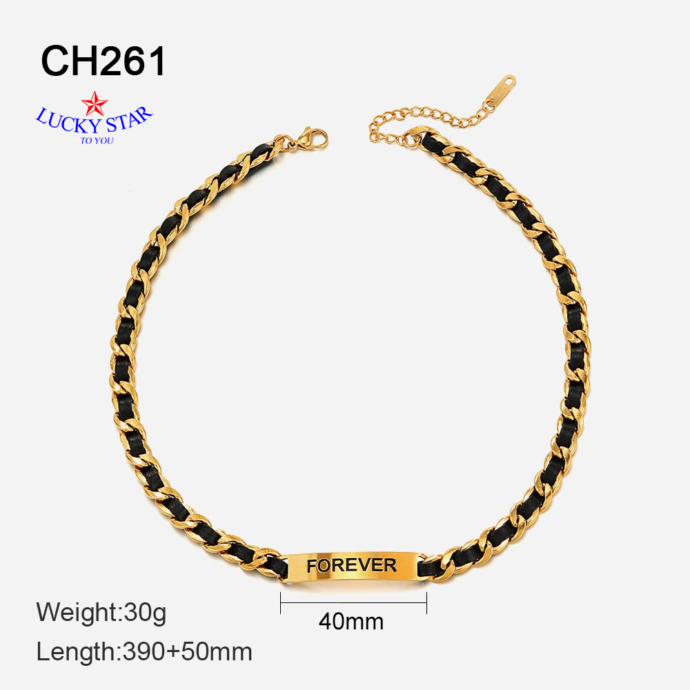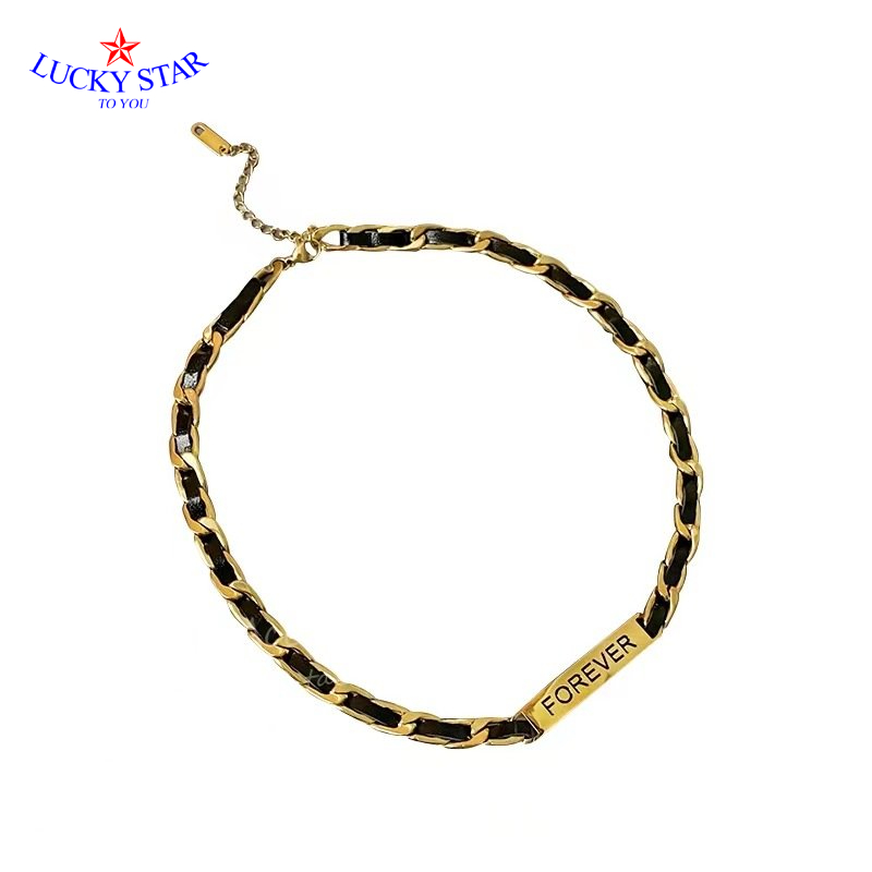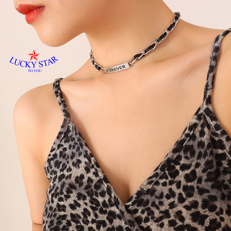 Dây chuyền titan khắc chữ Forever lồng dây da Pu cá tính, sang trọng – Nhận khắc chữ logo thương hiệu theo yêu cầu