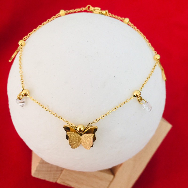 - Sự góp mặt của trang sức sẽ giúp tạo nên tổng thể hài hòa, trọn vẹn cho bộ trang phục. Vì thế đừng bỏ lỡ những món phụ kiện đáng yêu này và thường xuyên làm mới chúng cho tủ đồ của mình nhé. Sợi Lắc chân hình bướm dưới đây là một ví dụ thích hợp cho những ai đang tìm kiếm cho mình một chiếc lắc chân xinh xắn.