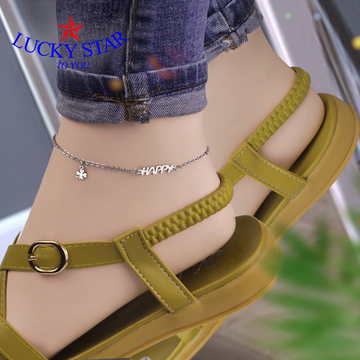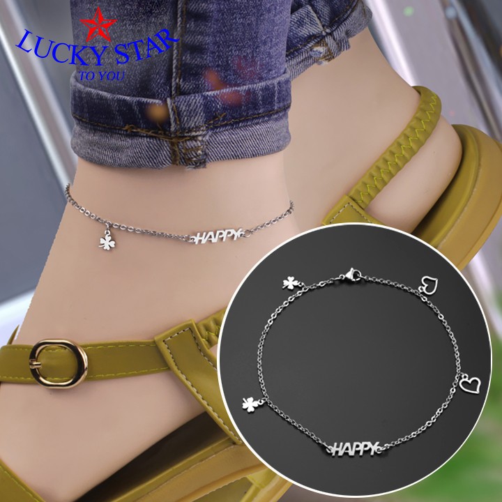 - Đặc biệt, chiếc lắc chân inox chữ happy cỏ 4 lá trái tim không hề kén trang phục. Bạn hoàn toàn có thể mang như một món phụ kiện đi làm với set đồ công sở, trang phục thường ngày khi đi học, đi chơi dạo phố hoặc kết hợp cùng váy để thêm phần nổi bật trong các sự kiện trang trọng.