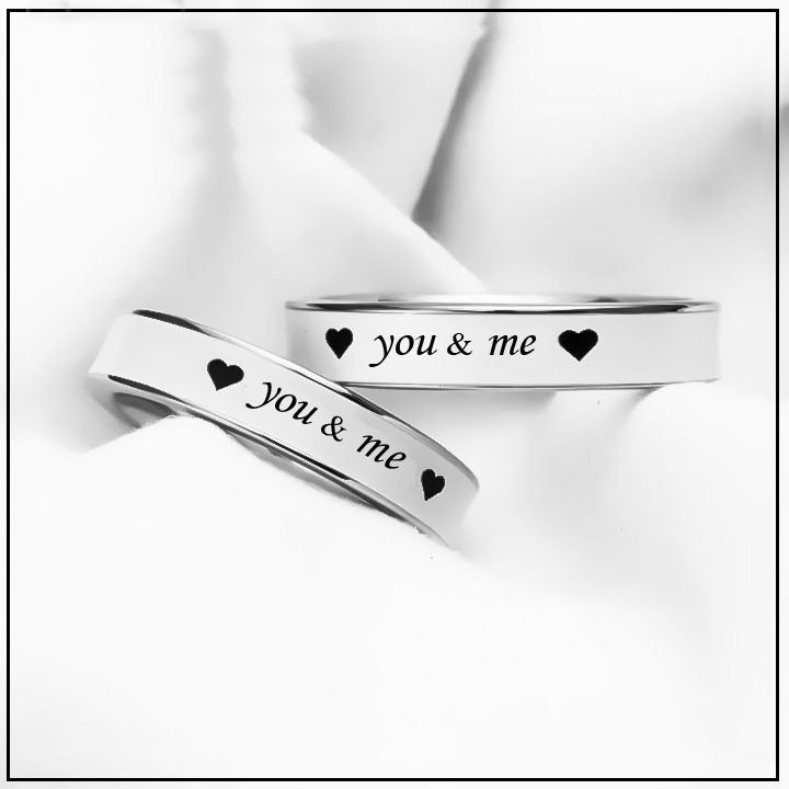 - Nhẫn đôi You & Me được thiết kế đơn giản nhưng vô cùng tinh tế và sang trọng. Với rất nhiều mẫu mã được khắc lên vòng như: chữ LOVE, C.K VK, I love You, You & Me, nhịp đập còn tim, Endless, Forever love.