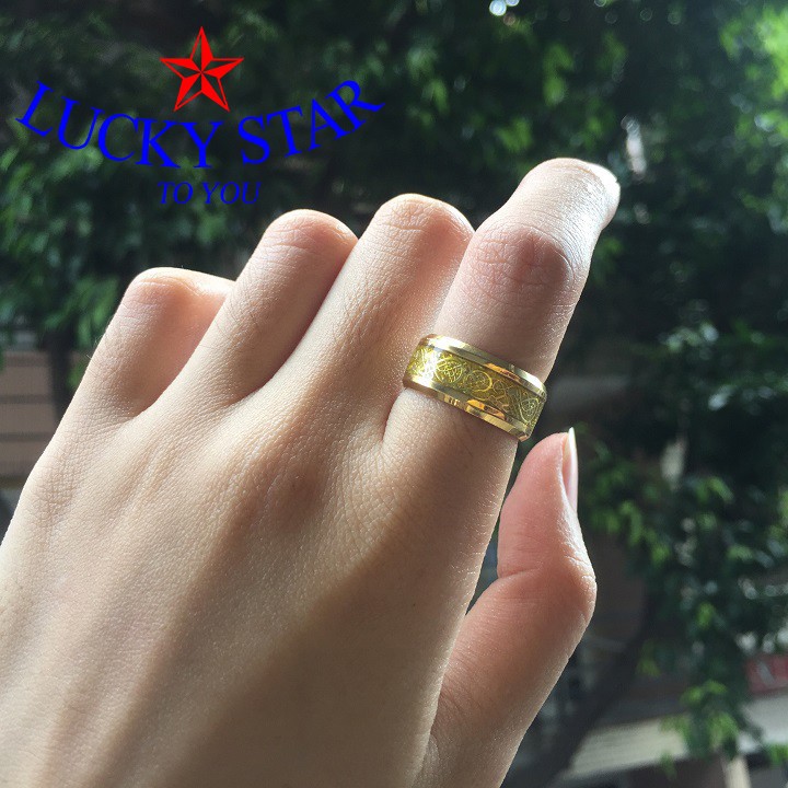 - Hãy cùng nhẫn rồng vàng titan chạm khắc hoa văn tinh tế thay đổi phong cách thời trang và trở nên thật nổi bật, tự tin bạn nhé!
