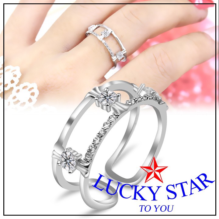- Hãy để Nhẫn nữ hai thanh đính đá freesize cùng bạn luôn yêu đời và tạo ánh sáng lấp lánh cho chính cuộc sống của bạn nhé!