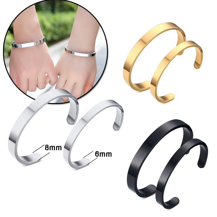 - Thiết kế hở hai đầu thời thượng của Vòng tay cặp đôi trơn hở hai đầu dễ dàng đeo vào và tháo ra, giúp bạn có thể tùy chỉnh kích thước của vòng tay cho phù hợp với cổ tay của bạn, mang đến sự tiện lợi trong việc làm đẹp cho bản thân và nửa kia.