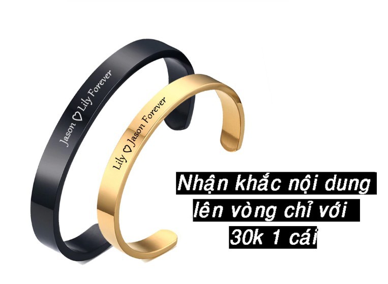 - Đặc biệt, Vòng tay cặp đôi trơn hở hai đầu còn nhận khắc chữ với giá chỉ 30.000 đồng/vòng tay. Những dòng chữ ý nghĩa được lưu giữ không phai trên chiếc vòng của cả hai còn giúp cho tình yêu thêm bền chặt, nồng nàn.