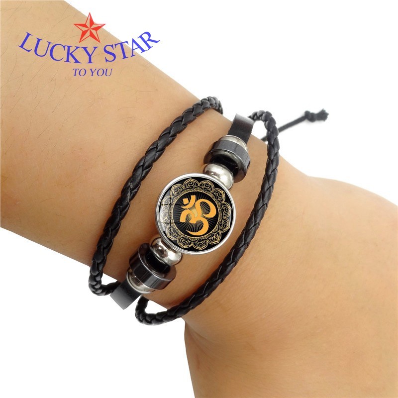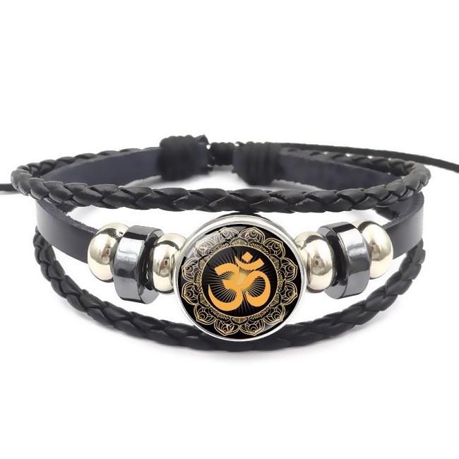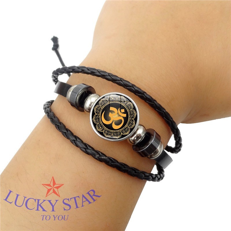 Sản phẩm gồm 1 x Vòng tay da nam khắc chữ OM thời trang