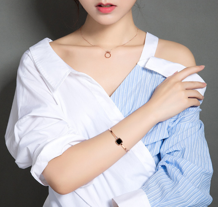 VÒNG TAY MẶT VUÔNG ĐÁ ĐEN THANH LỊCH QUYẾN RŨ