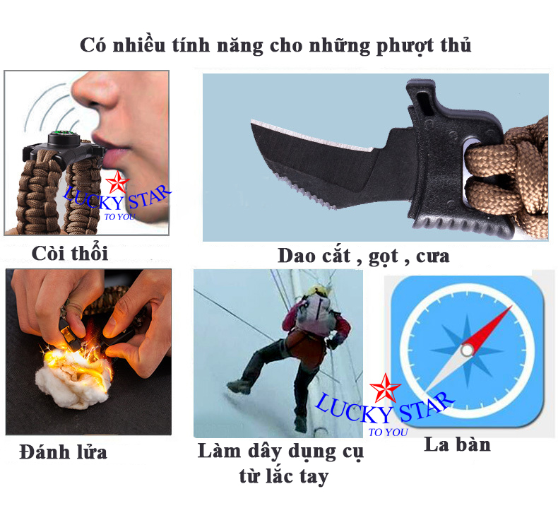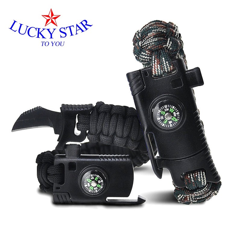 - Tiếp theo chính là chức năng đánh lửa và cắt gọt vô cùng tiện lợi. Những khi muốn dừng chân bên bờ hồ câu cá hay các nơi khác và nướng một chút đồ ăn cùng nhau tận hưởng không khí thiên nhiên chắc chắn không thể không cần lửa và dao gọt. Vì thế vòng tay phượt cũng chuẩn bị cho bạn điều đó.